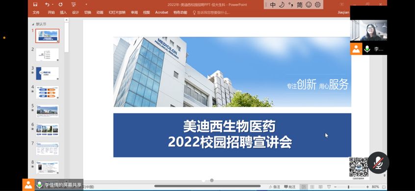 招聘会上,美迪西生物医药主要负责人李女士依次从企业概况、主营业务、培训发展、薪酬福利以及招聘流程等方面向同学们进行详细介绍,帮助大家对企业进行深入了解,并将招聘岗位的具体要求和岗位职责逐一介绍给学生。同学们积极与公司负责人沟通交流,详细咨询公司情况及招聘岗位需求。本次招聘会后,同学们积极投递简历,用人单位线上进行了简历初筛。面对同学们提出的问题,李女士逐一耐心回答,并发布了公司在校园招聘相关的文件来详细说明。