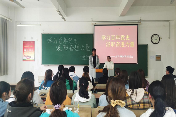 以庆祝建党百年为契机,积极推进主题教育活动,推进落实立德树人根本任务,加强学生思想引领,弘扬爱党爱国爱社会主义精神,真正让广大学生明理、增信、崇德、力行,增强“四个意识”、坚定“四个自信”、做到“两个维护”,努力展现新时代青年学子的精神风貌。生科1904班于4月16日在弘文楼1-113举行了“致敬百年路 坚定跟党走”主题班会。
